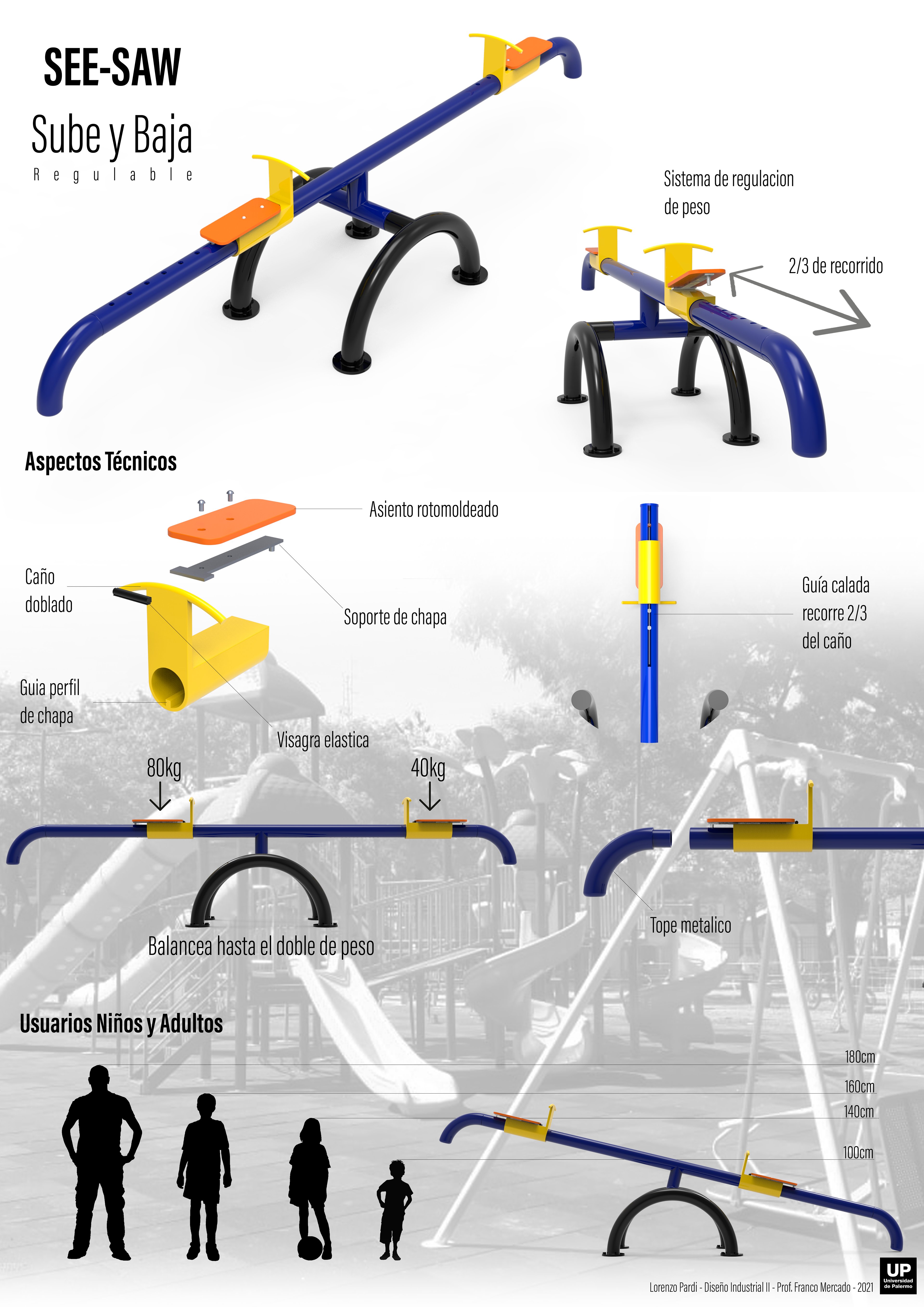 La consigna para este proyecto fue diseñar un sube y baja para usar en un espacio público de la ciudad de Buenos Aires. The slogan for this project was to design a seesaw to use in a public space in the city of Buenos Aires.