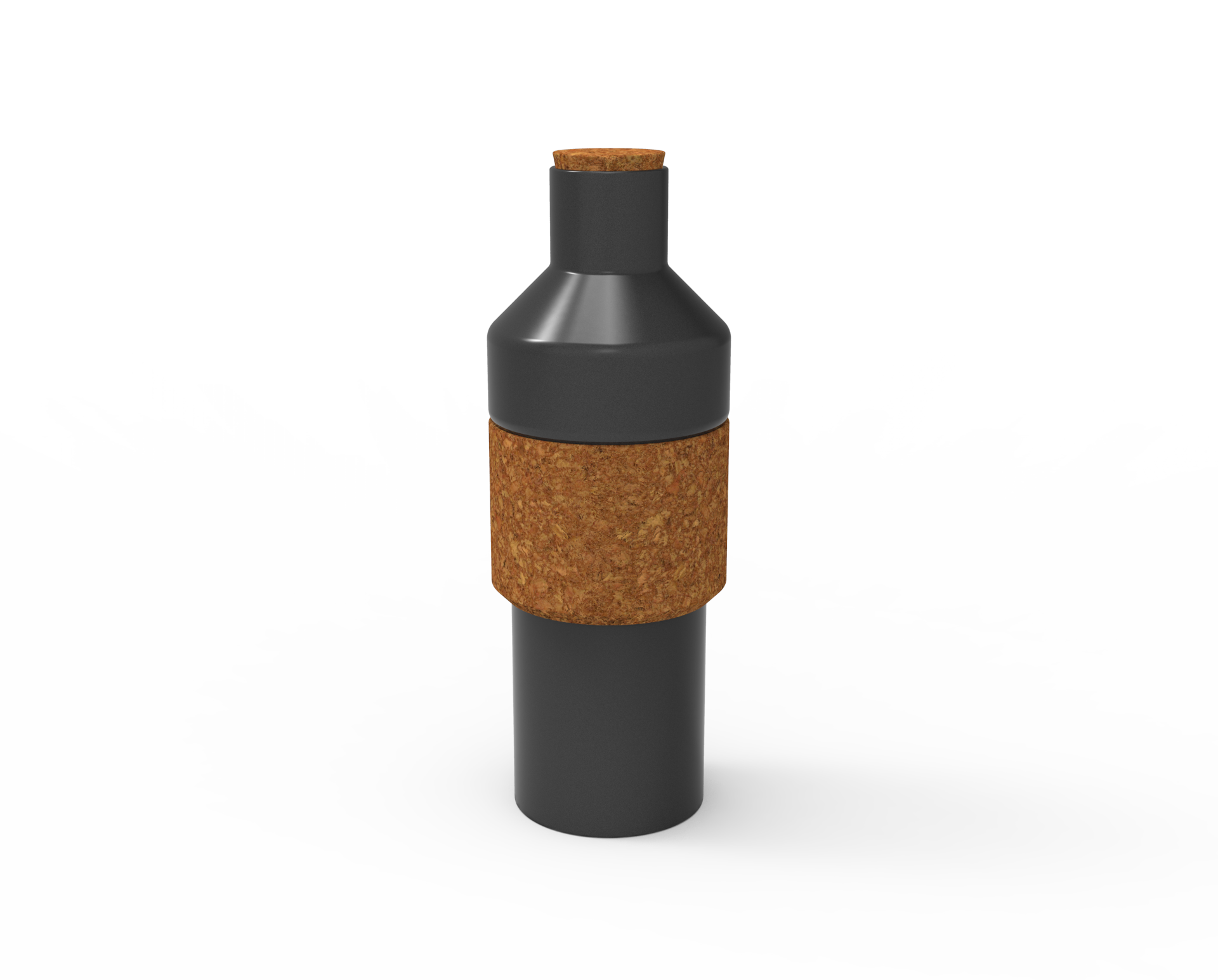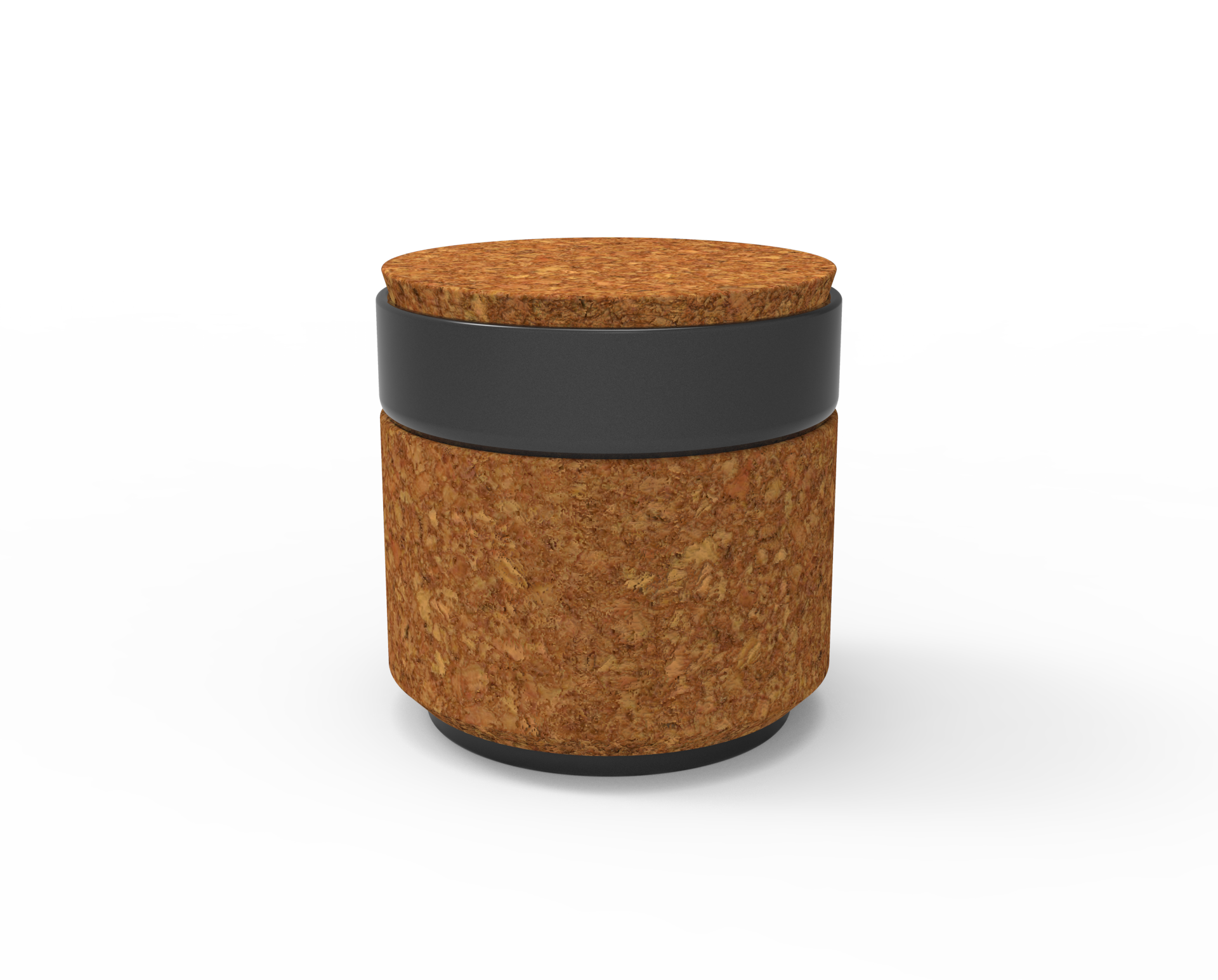 Contenedor de bebidas frías y calientes fabricado en cerámica y corcho.